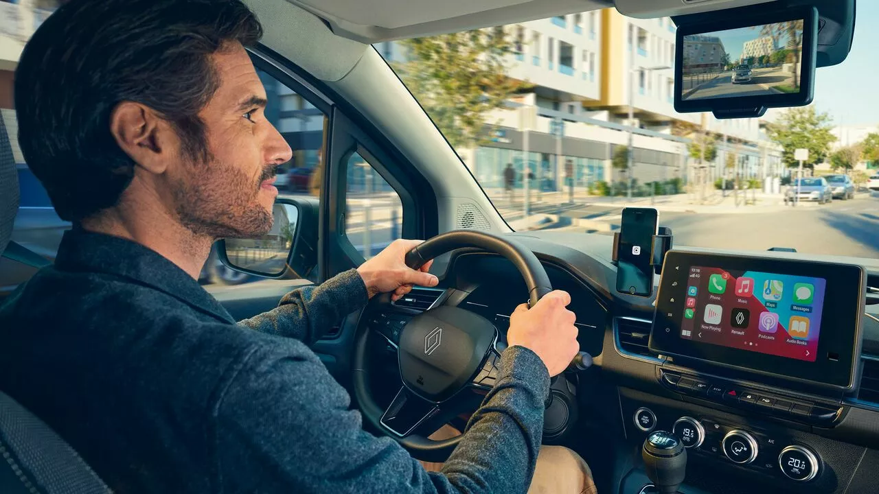 Los sistemas de asistencia de la exclusiva Kangoo Furgón E-tech acompañan al viajero tanto en la ciudad como en trayectos más largos con regulador de velocidad adaptativo, asistencia de mantenimiento en el carril además del sistema de frenado de emergencia asistida. El vehículo está integrado con tecnología innovadora para que todos los desplazamientos sean fáciles y seguros de realizar. Por medio de la asistencia de visión trasera es posible mantener siempre el control del vehículo y asegurar una buena maniobra de estacionamiento evitando posibles accidentes.
